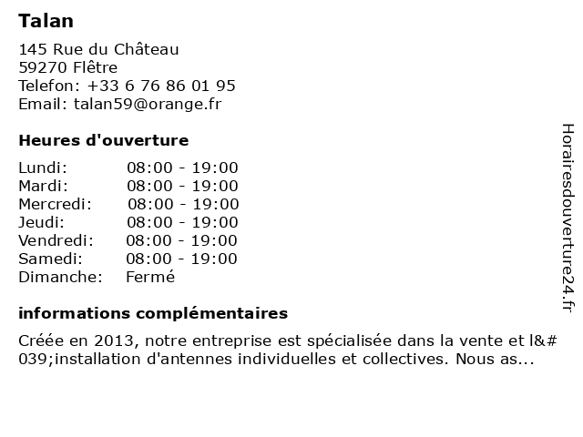 Horaires d'ouverture |