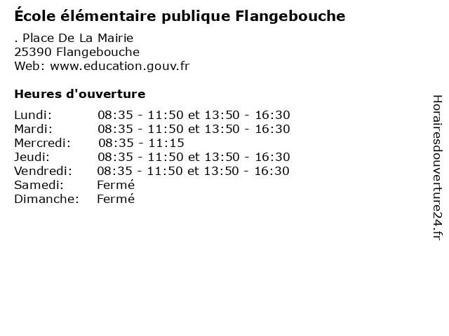 | Mardi | 08:35-11:50 et 13:50-16:30 |
