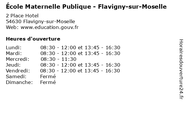 | Lundi | 08:30-12:00 et 13:45-16:30 |
