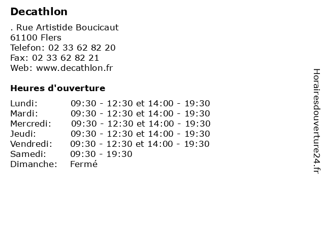1 Decathlon (Distance: 0,65 km) - ZA des Grands Champs, 61100 Flers accessoires, chaussures, decathlon, enfant, femme, homme, marques, sport 3 Decathlon Argentan Sarceaux (Distance: 39,64 km) Rue de la Gravelle, 61200 Sarceaux argentan, decathlon, sarceaux 4 Decathlon Caen Mondeville (Distance: 51,85 km) Les Carandes, 14120 Mondeville caen, decathlon, mondeville 6 Decathlon (Distance: 52,75 km) - Avenue des Drapeaux, 14980 Rots accessoires, decathlon, fournitures, sport, vêtements, équipement |