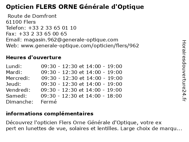 | Mercredi | 09:30-12:30 et 14:00-19:00 |