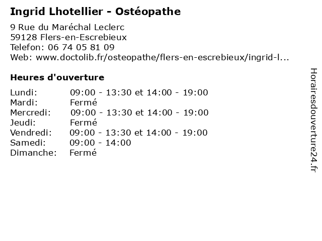 | Lundi | 09:00-13:30 et 14:00-19:00 |