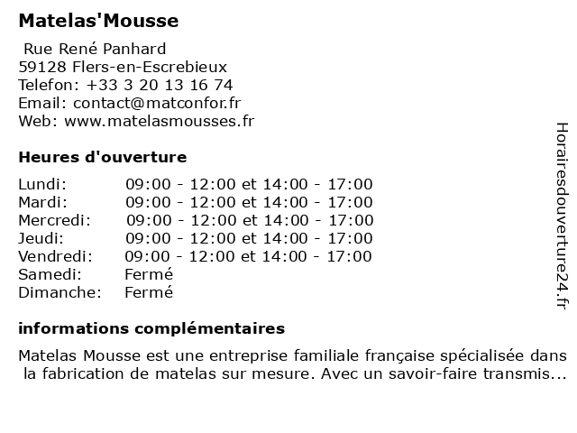 | Mardi | 09:00-12:00 et 14:00-17:00 |