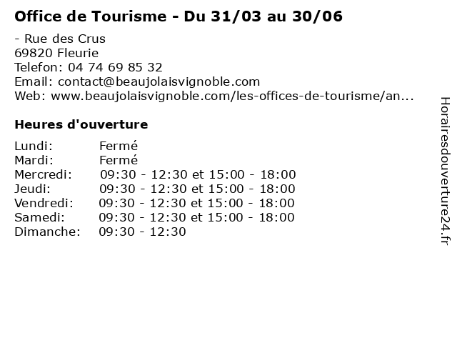 Termes de recherche pour Office de Tourisme - Du 31/03 au 30/06:du, de, au, transports, restaurants, office, tourisme, 31/03, 30/06, horaires des musées |