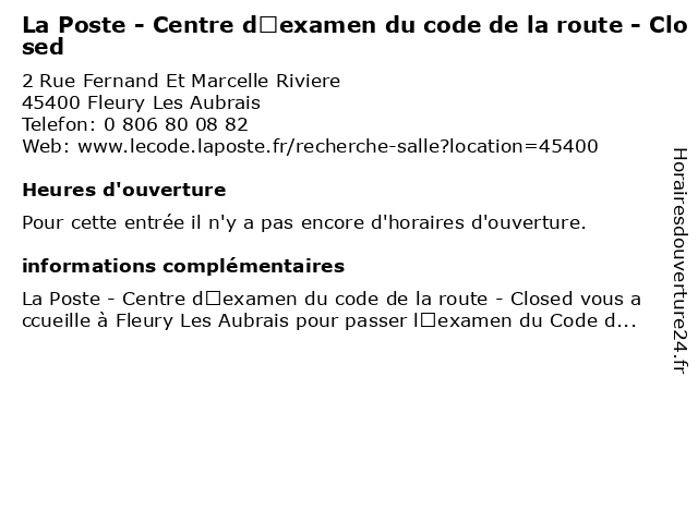 | Appeler La Poste - Centre d’examen du code de la route - Closed | |