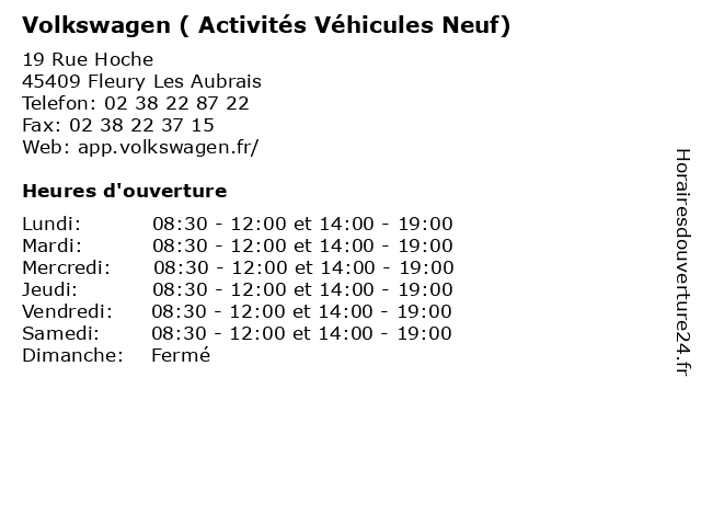 | Samedi | 08:30-12:00 et 14:00-19:00 |