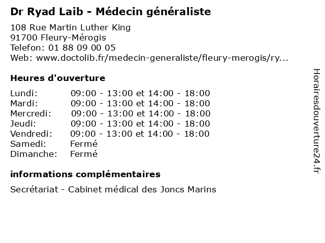 | Lundi | 09:00-13:00 et 14:00-18:00 |
