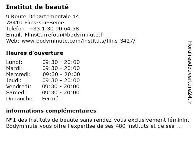 | Lundi | 09:30-20:00 |
