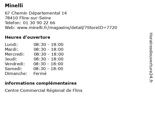 1 Minelli (Distance: 18,08 km) . Rue de la Croix des Maheux, 95000 Cergy accessoires, chaussures, minelli, sacs 2 Minelli (Distance: 18,36 km) 9 Rue Collignon, 78100 Saint Germain en Laye chaussures, magasins, maroquinerie, minelli, mode, vente, vetements 3 Cécile Minelli - Orthophoniste (Distance: 14,23 km) 2 Boulevard Sully, 78200 Mantes-la-Jolie consultation, cécile, docteur, med, minelli, médecin, orthophoniste, traitement 4 Gerard Darel (Distance: 17,42 km) 1 Avenue du Président John Fitzgerald Kennedy, 78340 Les Clayes-sous-Bois accessoires, boutique, darel, gerard, mode, prêt à porter, sacs, vêtements 5 Minelli (Distance: 24,32 km) 5 Place Colbert, 78885 Saint-Quentin cafe, enfants, homme, minelli, mode femme, restaurant, servicies 6 Bensimon (Distance: 25,19 km) 395 Rue du Général Leclerc, 95130 Franconville bensimon, chaussures, maroquinerie, mode, sacs, tennis, vêtements |
