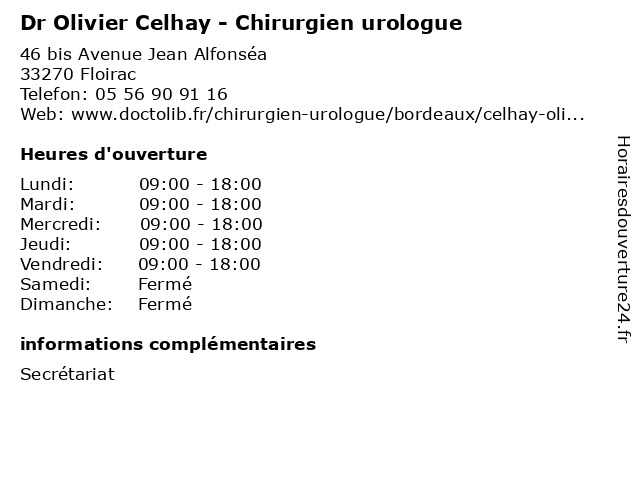 1 Dr Olivier Degrandi - Chirurgien viscéral et digestif (Distance: 0,00 km) 46 Avenue Jean Alfonséa, 33270 Floirac chirurgien, degrandi, digestif, docteur, dr, et, olivier, sante, soins, viscéral 2 Dr Marc-Olivier François - Chirurgien viscéral et digestif (Distance: 0,00 km) 46 Avenue Jean Alfonséa, 33270 Floirac chirurgien, digestif, docteur, dr, et, francois, françois, marc, olivier, sante, soins, viscéral 3 Dr Gilles Pasticier - Chirurgien urologue (Distance: 0,00 km) 46 bis Avenue Jean Alfonséa, 33270 Floirac chirurgien, dr, gilles, medecin, pasticier, sante, soins, urologue 4 Dr Laure Monleon - Chirurgien urologue (Distance: 0,00 km) 46 bis Avenue Jean Alfonséa, 33270 Floirac chirurgien, docteur, dr, laure, monleon, sante, soins, urologue 5 Dr Olivier Coste - Neurologue (Distance: 0,04 km) 46 Avenue Jean Alfonséa, 33270 Floirac consultation, coste, docteur, dr, med, médecin, médecine, neurologue, olivier, traitement 6 Olivier Millet - Masseur-kinésithérapeute (Distance: 0,04 km) 46b Avenue Jean Alfonséa, 33270 Floirac docteur, kine, kinesitherapeute, kinésithérapeute, masseur, millet, olivier |