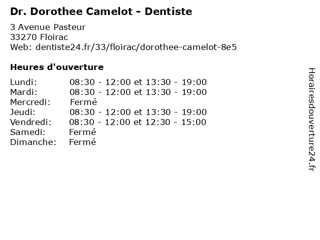 | Lundi | 08:30-12:00 et 13:30-19:00 |