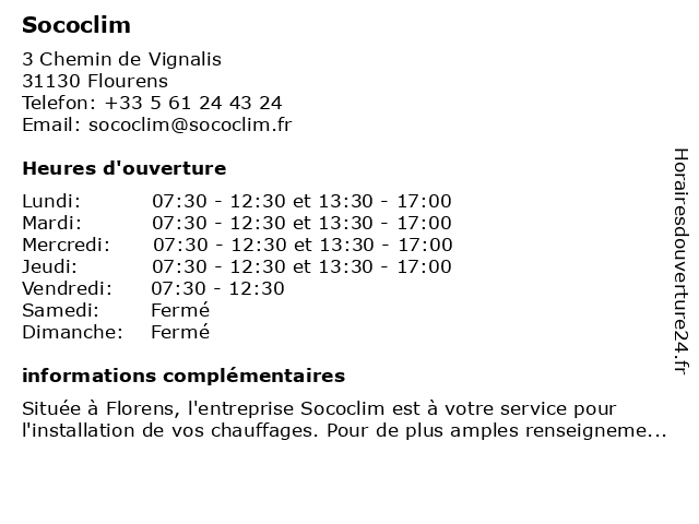 | Lundi | 07:30-12:30 et 13:30-17:00 |