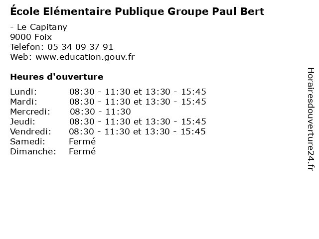 | Samedi | Fermé |