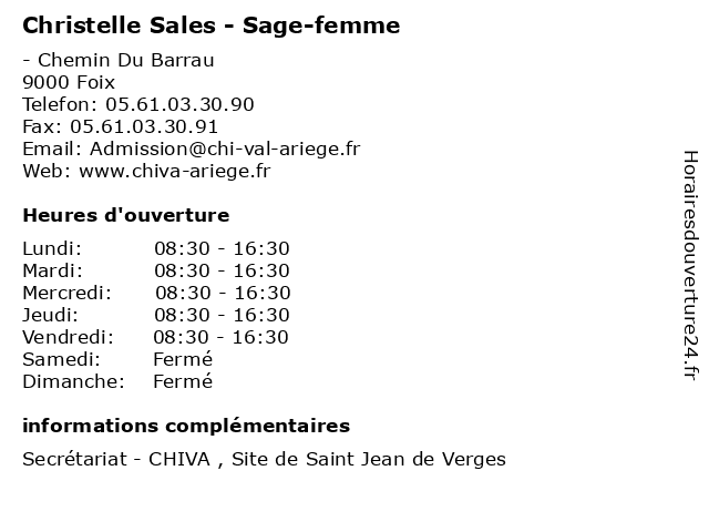 | Samedi | Fermé |