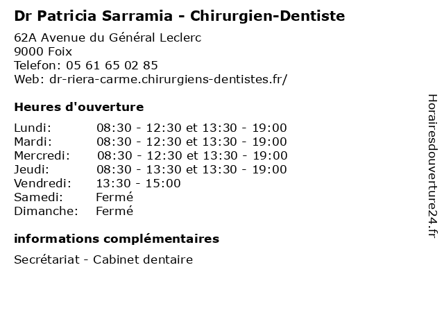 | Lundi | 08:30-12:30 et 13:30-19:00 |