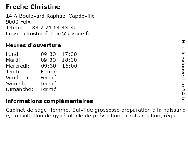 | Samedi | Fermé |