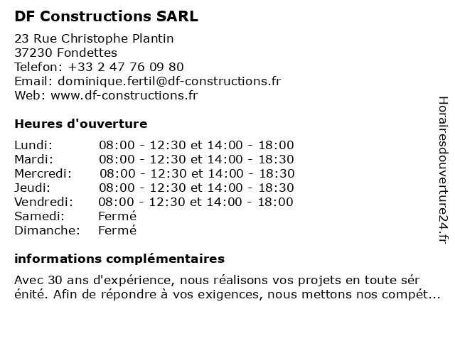 | Lundi | 08:00-12:30 et 14:00-18:00 |