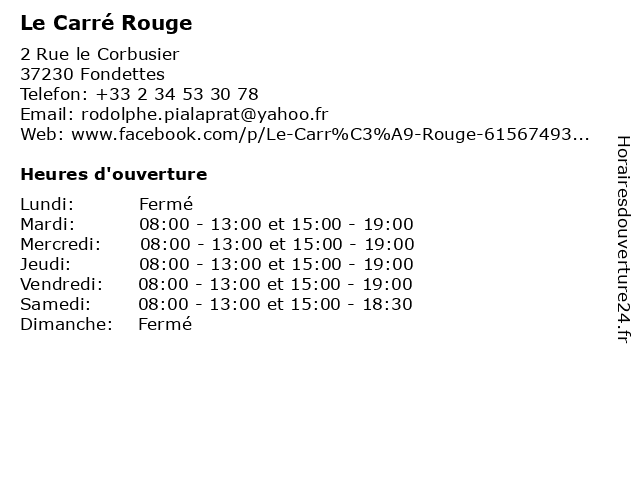 | Samedi | 08:00-13:00 et 15:00-18:30 |