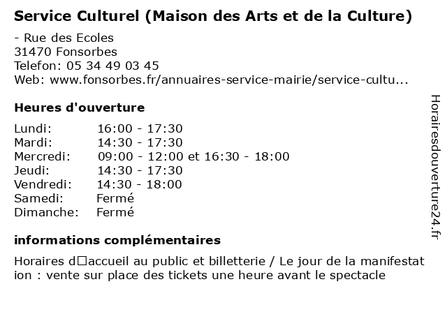 Termes de recherche pour Service Culturel (Maison des Arts et de la Culture):la, et, de, fonsorbes, des, service, centre, maison, arts, culture, culturel, activités, evenements |