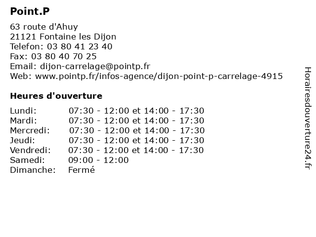 | Lundi | 07:30-12:00 et 14:00-17:30 |