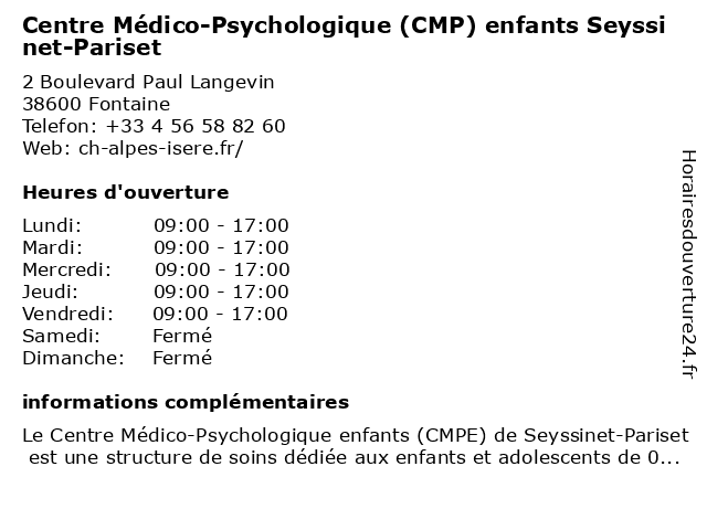 Termes de recherche pour Centre Médico-Psychologique (CMP) enfants Seyssinet-Pariset:enfants, centre, seyssinet, cmp, pariset, médico, psychologique |