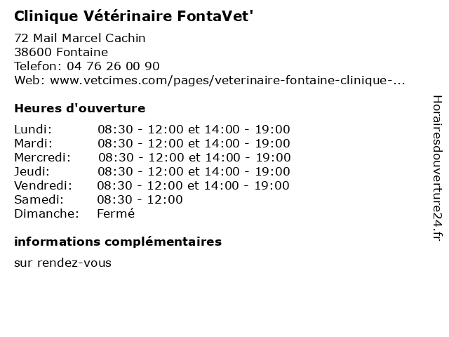 | Lundi | 08:30-12:00 et 14:00-19:00 |