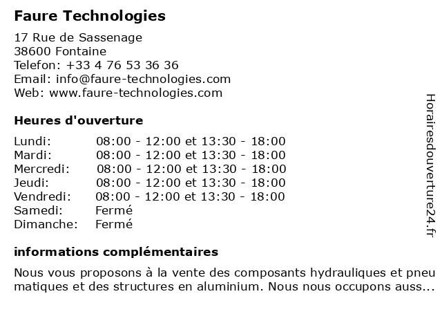 | Lundi | 08:00-12:00 et 13:30-18:00 |