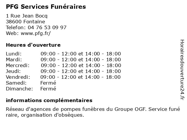 1 PFG Services Funéraires (Distance: 3,80 km) 6 Avenue Maréchal Randon, 38000 Grenoble funeraires, funéraires, marbrerie, pfg, plaque funéraire, pompes funèbres, services 2 Pompes funèbres PFG FONTAINE (Distance: 0,00 km) 1 Rue Jean Bocq, 38600 Fontaine avis de décès, crémation, entretien de sépulture, fleurs deuil, fontaine, formalités après obsèques, funèbres, inhumation, marbrerie, monument funéraire, pfg, pompes, pompes funèbres, prévoyance obsèques 3 Fleuriste Atelier des Anges - Compositions Funéraires (Distance: 3,53 km) 120 Grande Rue, 38700 La Tronche anges, atelier, compositions, des, fleuriste, florist, flowers, funéraires, shop 4 Pompes funèbres PFG GRENOBLE (Distance: 3,70 km) 6 Avenue Maréchal Randon, 38000 Grenoble avis de décès, crémation, entretien de sépulture, fleurs deuil, formalités après obsèques, funèbres, grenoble, inhumation, marbrerie, monument funéraire, pfg, pompes, pompes funèbres, prévoyance obsèques 5 Pompes funèbres PFG SAINT EGREVE (Distance: 4,20 km) 19 Route de Grenoble, 38120 Saint-Egrève avis de décès, crémation, egreve, entretien de sépulture, fleurs deuil, formalités après obsèques, funèbres, inhumation, marbrerie, monument funéraire, pfg, pompes, pompes funèbres, prévoyance obsèques, saint 6 PFG Services Funéraires (Distance: 37,46 km) 2 Rue Docteur Charvet, 38530 Pontcharra funeraires, funéraires, marbrerie, pfg, plaque funéraire, pompes funèbres, services |