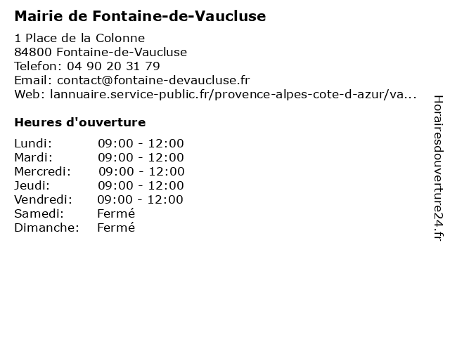 Termes de recherche pour Mairie de Fontaine-de-Vaucluse:de, fontaine, administration, mairie, service, assoc public, vaucluse |