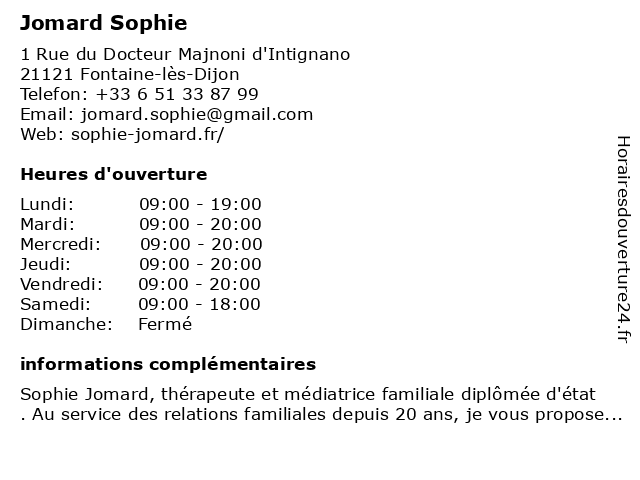 1 Dr Anne-Sophie Poulain - Médecin généraliste (Distance: 1,01 km) 3 Rue de Dijon, 21121 Fontaine-lès-Dijon anne, docteur, dr, generaliste, généraliste, medical, médecin, poulain, soin, sophie 2 Maître Sophie Leneuf - Avocate (Distance: 1,41 km) 7 Avenue Jean Bertin, 21000 Dijon avocate, avocats, civils, droits, juridiques, leneuf, maître, sophie 3 Sophie Campomizzi - Psychologue (Distance: 1,53 km) 16 Boulevard François Pompon, 21000 Dijon campomizzi, folie, psychiatre, psychiatrie, psychiatrique, psychologue, sophie 4 Dr Sophie Cheynel - Radiologue (Distance: 1,86 km) - Allée Roger Renard, 21240 Talant cheynel, diagnostique, dijon, dr, im2p, imagerie, irm, radiologie, radiologue, sophie, talant, thérapeutique 5 Dr Sophie Cheynel - Radiologue (Distance: 2,42 km) 22 Avenue Françoise Giroud, 21000 Dijon cheynel, diagnostique, dijon, dr, im2p, imagerie, irm, radiologie, radiologue, scanner, sophie, thérapeutique, valmy 6 Sophie Bourgeois - Massage Bien-être (Distance: 3,03 km) 2 Avenue Raymond Poincaré, 21000 Dijon bien, bien-être, bourgeois, dijon, massage, sophie, être |