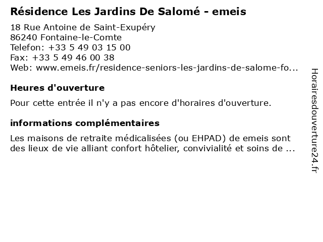 | Appeler Résidence Les Jardins De Salomé - emeis | |