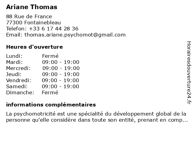 | Lundi | Fermé |