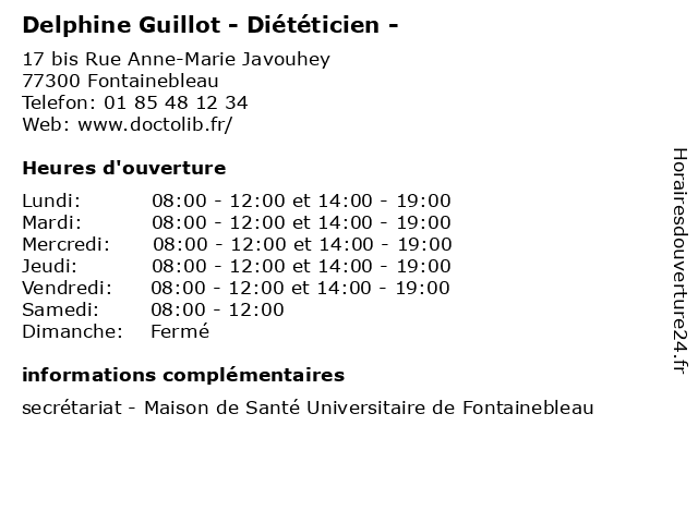 | Lundi | 08:00-12:00 et 14:00-19:00 |