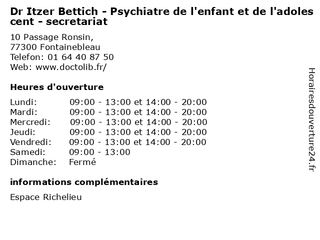 | Lundi | 09:00-13:00 et 14:00-20:00 |