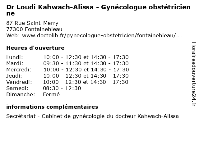 | Mercredi | 10:00-12:30 et 14:30-17:30 |