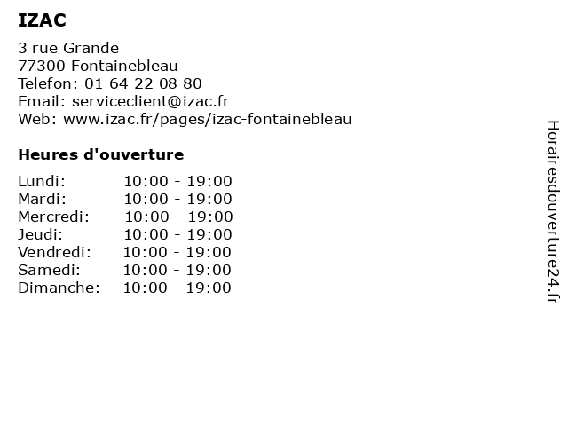 | Samedi | 10:00-19:00 |