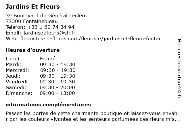 | Lundi | Fermé |