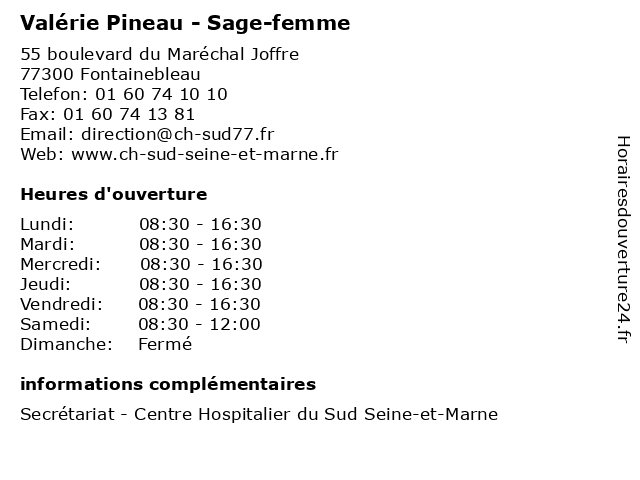 1 Dr Valérie Dumas-Foret - Angiologue (Distance: 0,29 km) 4 Rue Anne-Marie Javouhey, 77300 Fontainebleau 77, angiologue, diagnostique, dr, dumas, foret, imagerie, médicale, radiologie, sud, thérapeutique, valérie 2 Valérie Lalane - Psychologue (Distance: 0,57 km) 6 Rue des Bois, 77300 Fontainebleau folie, lalane, psychiatre, psychiatrie, psychiatrique, psychologue, valérie 4 Dr Valérie Dumas-Foret - Angiologue (Distance: 1,54 km) 25-27 Avenue Franklin Roosevelt, 77210 Avon 77, angiologue, diagnostique, dr, dumas, foret, imagerie, médicale, radiologie, sud, thérapeutique, valérie 5 Boucherie Pineau (Distance: 12,49 km) 32 Rue du 26 Août 1944, 77820 Le Châtelet-en-Brie boucherie, boucheries, charcuterie, jacky, philippe, pineau, viandes 6 Brunet Viviane Valérie (Distance: 12,57 km) 8 Rue du Closeau, 77760 Achères-la-Forêt brunet, valérie, viviane |