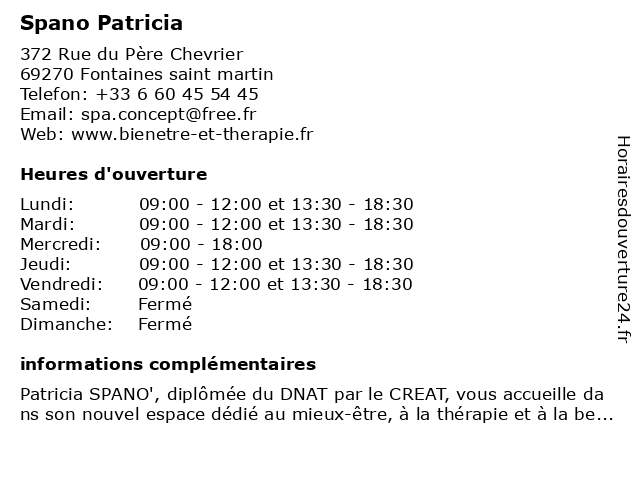 | Lundi | 09:00-12:00 et 13:30-18:30 |