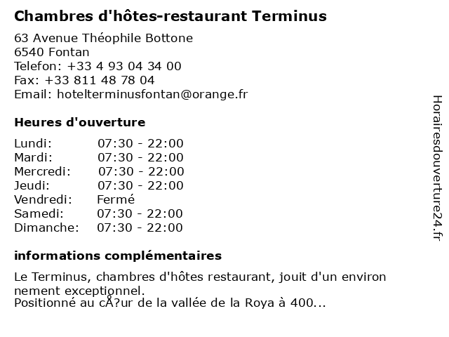 Termes de recherche pour Chambres d'hôtes-restaurant Terminus:restaurant, chambres, terminus, d'hôtes |