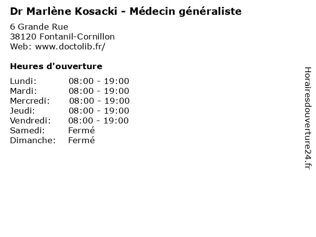 | Lundi | 08:00-19:00 |