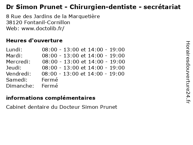 | Lundi | 08:00-13:00 et 14:00-19:00 |