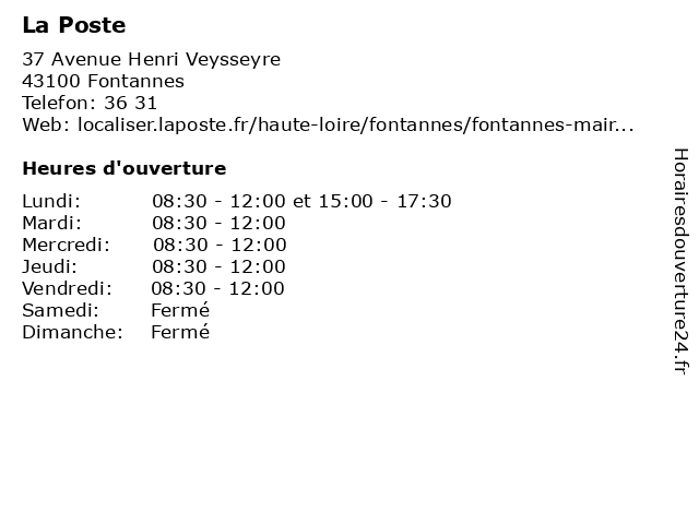 | Samedi | Fermé |