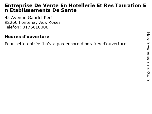 | Appeler Entreprise De Vente En Hotellerie Et Res Tauration En Etablissements De Sante | |