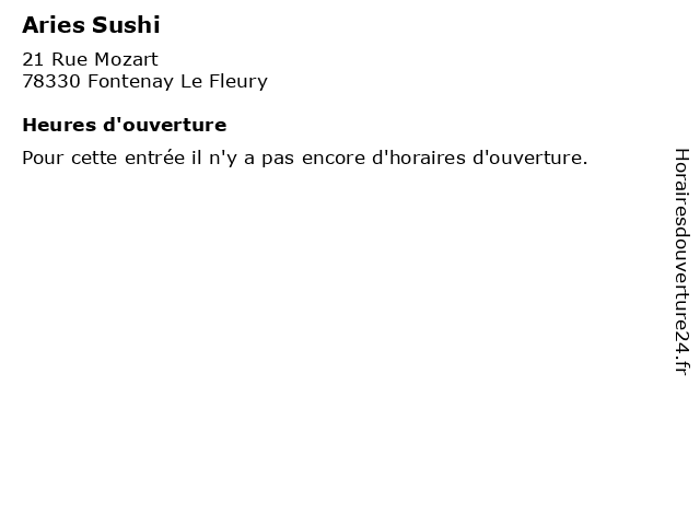 1 Aries Sushi (Distance: 18,86 km) Carrefour Sartrouville Cc Avenue Robert, 78500 Sartrouville aries, restaurants, sushi 2 Ai Sushi (Distance: 0,30 km) 18 Avenue De La Republique, 78330 Fontenay Le Fleury ai, restaurants, sushi 3 Planet Sushi (Distance: 2,48 km) 44-46 avenue du Centre, 78180 Montigny-le-Bretonneux la nourriture, les boissons, planet, restaurant, sushi 4 Sushi Yin (Distance: 2,51 km) 5 Rue de la Mare de Troux, 78280 Guyancourt japonais, makis, restaurant, riz, sishis, sushi, yin 5 Sushi Shop Restauration (Distance: 6,06 km) 4 Rue Andre Chenier, 78000 Versailles restaurants, restauration, shop, sushi 6 Fresh Lounge Sushi (Distance: 9,16 km) 4 Place du 11 Novembre 1918, 78220 Viroflay bento, fresh, japonais, livraison, lounge, makis, restaurant, sushi, sushis |