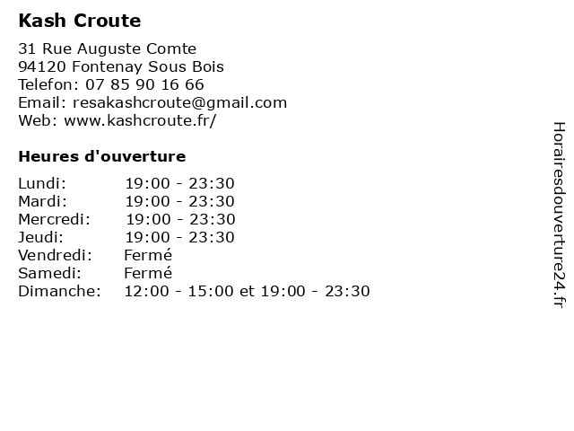 | Dimanche | 12:00-15:00 et 19:00-23:30 |