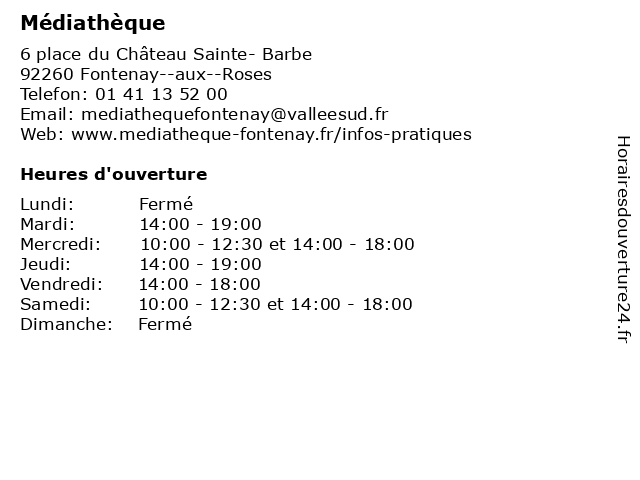 | Mercredi | 10:00-12:30 et 14:00-18:00 |