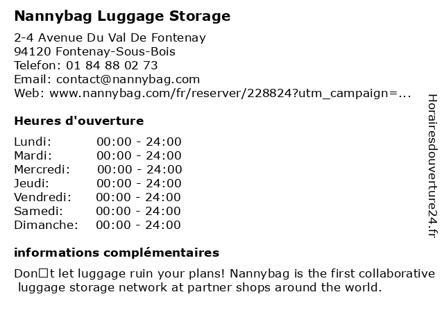 1 Nannybag Luggage Storage (Distance: 1,51 km) 7 Rue Gaston Charle, 94120 Fontenay-Sous-Bois luggage, nannybag, storage 2 Nannybag Luggage Storage (Distance: 1,61 km) 23 Rue Paul Bert, 94130 Nogent-Sur-Marne luggage, nannybag, storage 3 Nannybag Luggage Storage (Distance: 3,01 km) 68 Rue De La Jarry, 94300 Vincennes luggage, nannybag, storage 4 Nannybag Luggage Storage (Distance: 3,36 km) 8 Boulevard Aristide Briand, 93100 Montreuil luggage, nannybag, storage 5 Nannybag Luggage Storage (Distance: 3,40 km) 126 Bd De La Boissière, 93100 Montreuil luggage, nannybag, storage 6 |
