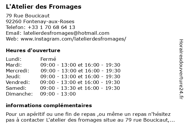 Termes de recherche pour L'Atelier des Fromages:des, l'atelier, fromages |