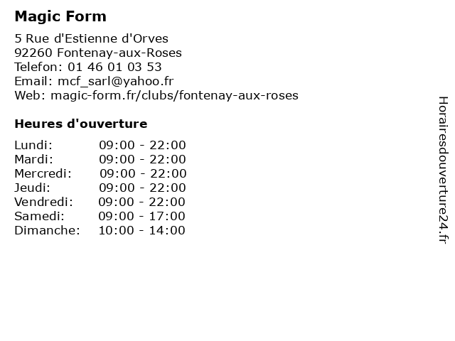 3 Magic Form (Distance: 6,40 km) 7 Avenue Saint-Marc, 91300 Massy bien, de, form, magic, salle, salles, sport, être 4 Magic Form (Distance: 7,23 km) 1356 Avenue Roger Salengro, 92370 Chaville bien, de, form, magic, salle, salles, sport, être 5 Magic Form (Distance: 9,29 km) 12 Rue des Anciennes Cristalleries, 94600 Choisy-le-Roi bien, de, form, magic, salle, salles, sport, être 6 Magic Form (Distance: 10,09 km) 2 Avenue de la Plesse, 91140 Villebon-sur-Yvette biking, cardiotraining, form, magic, musculation, salles de gym |